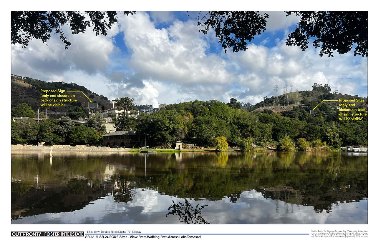 Billboards over Lake Temescal